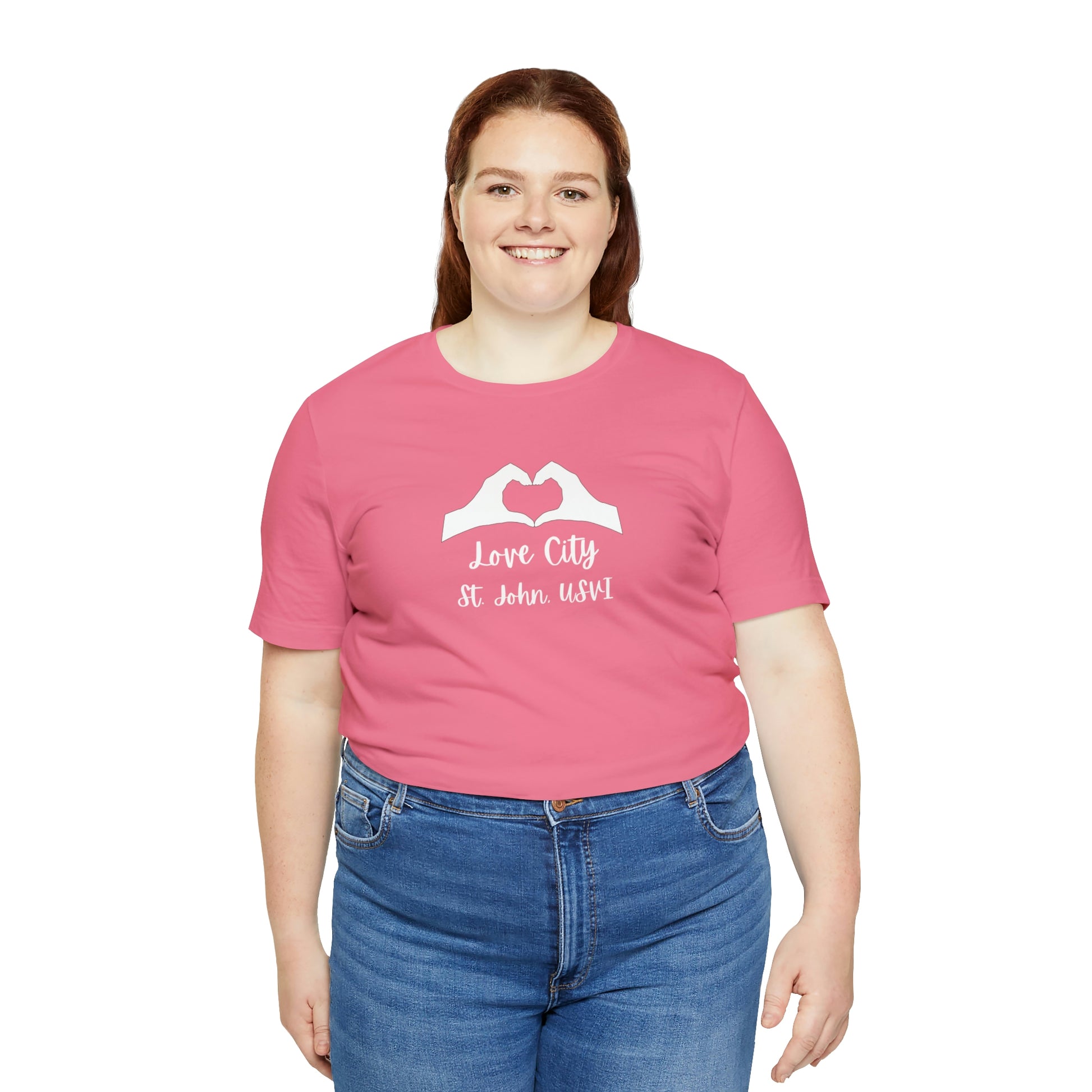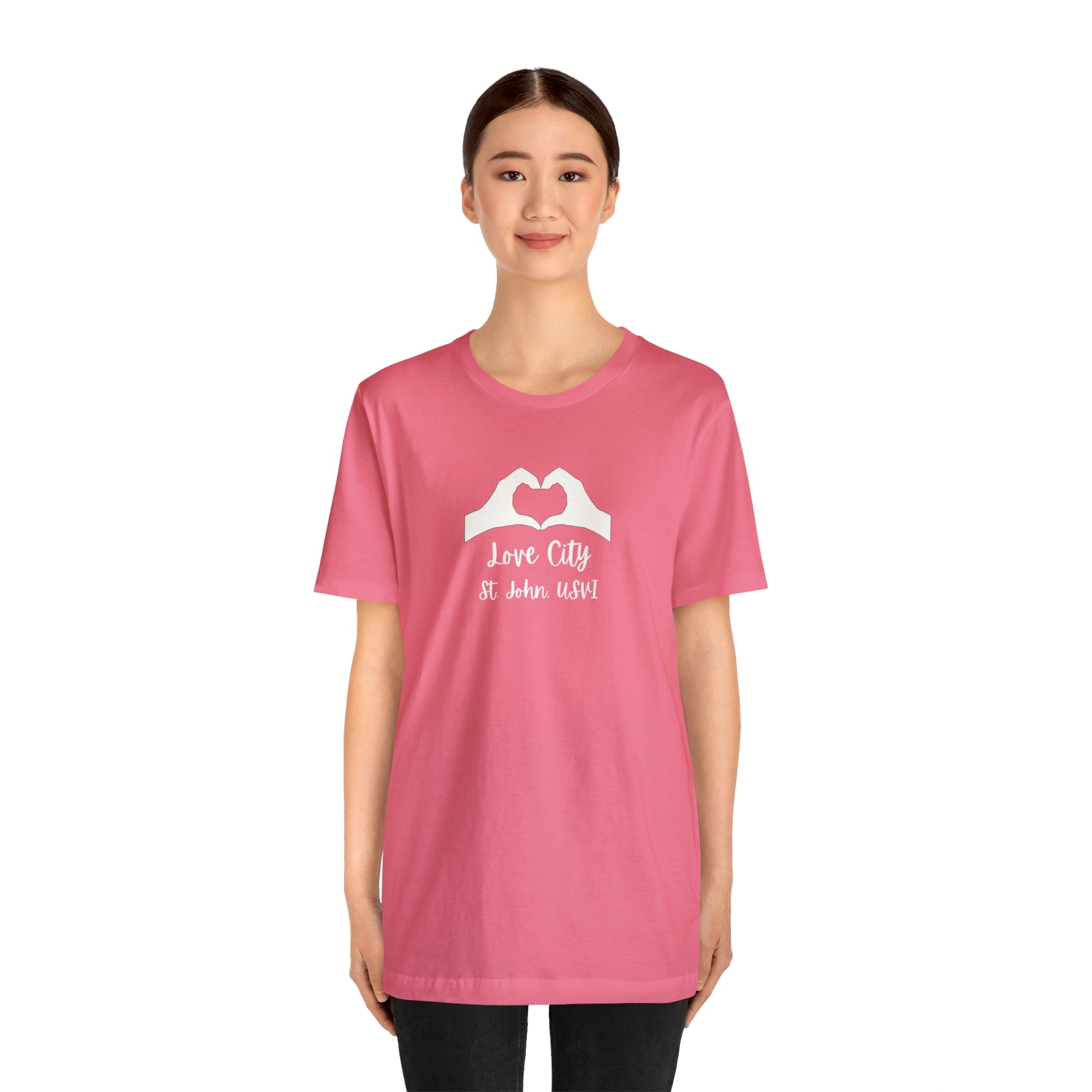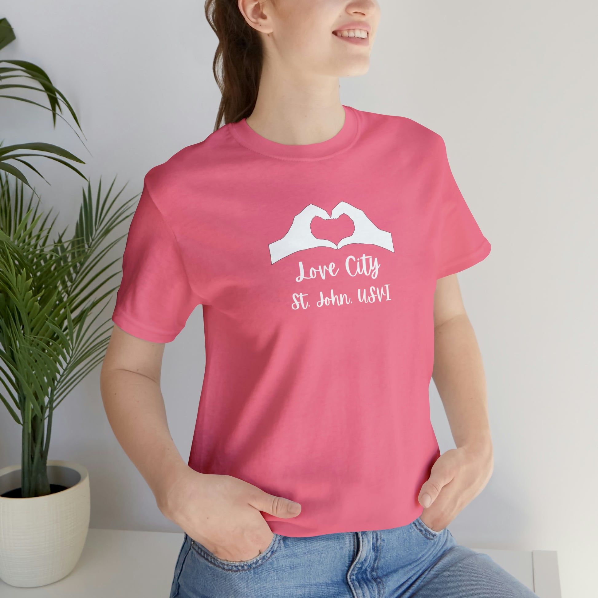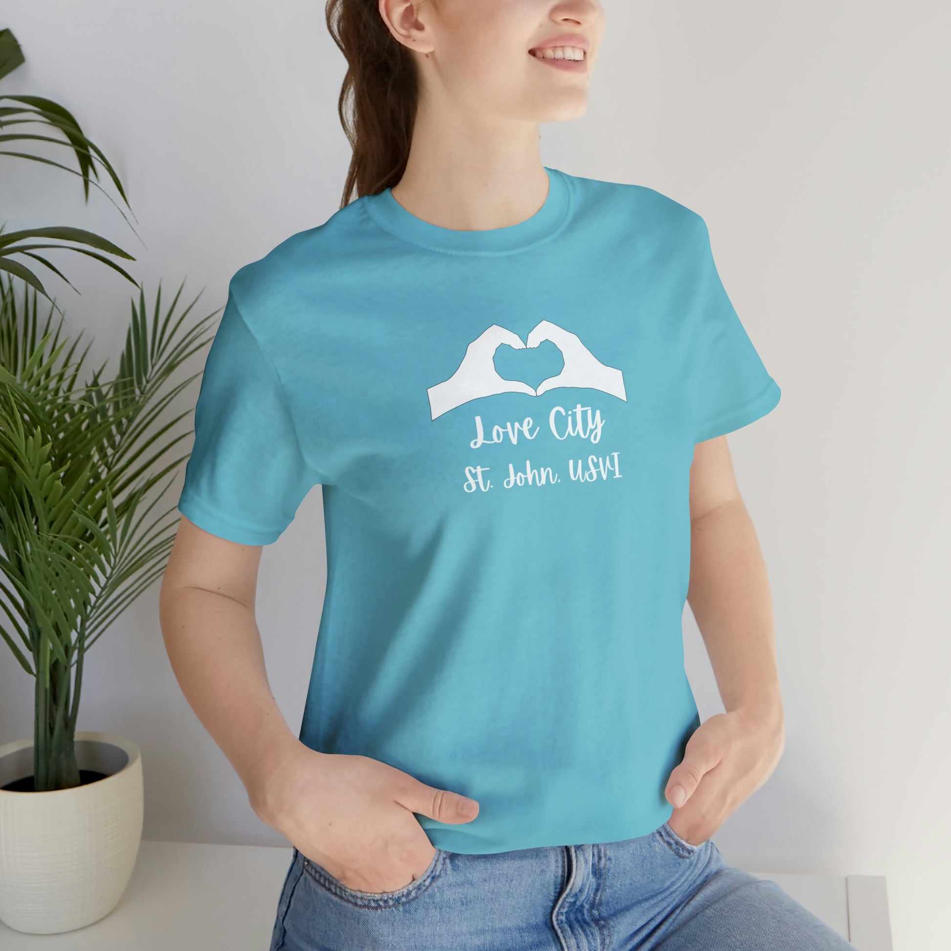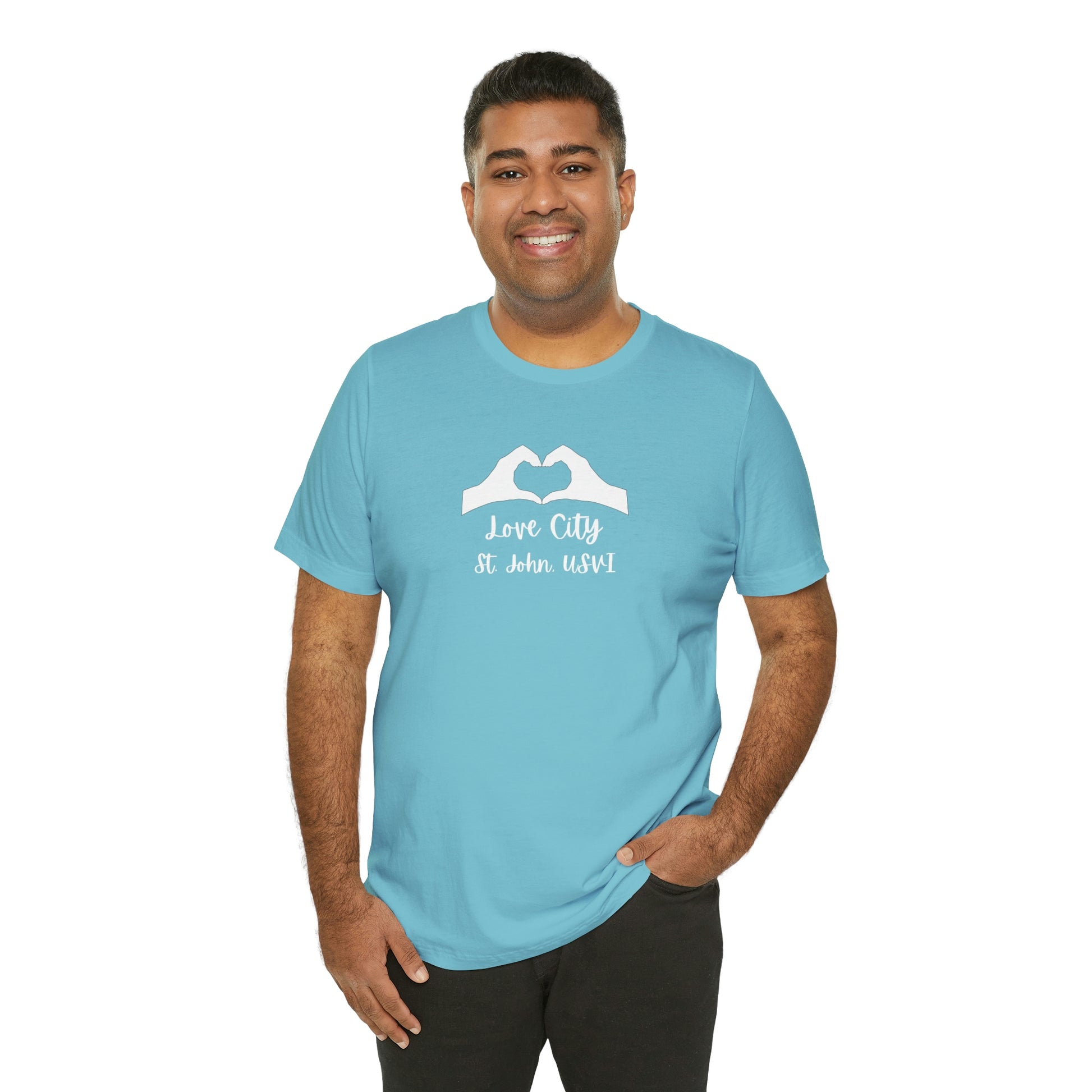 This Love City t-shirt is your new go to tee to throw over your swimsuit when heading to the beach, a quick pump at the gym, or just lounging around inside. These 100% cotton t-shirts are perfect for comfort wherever you are!